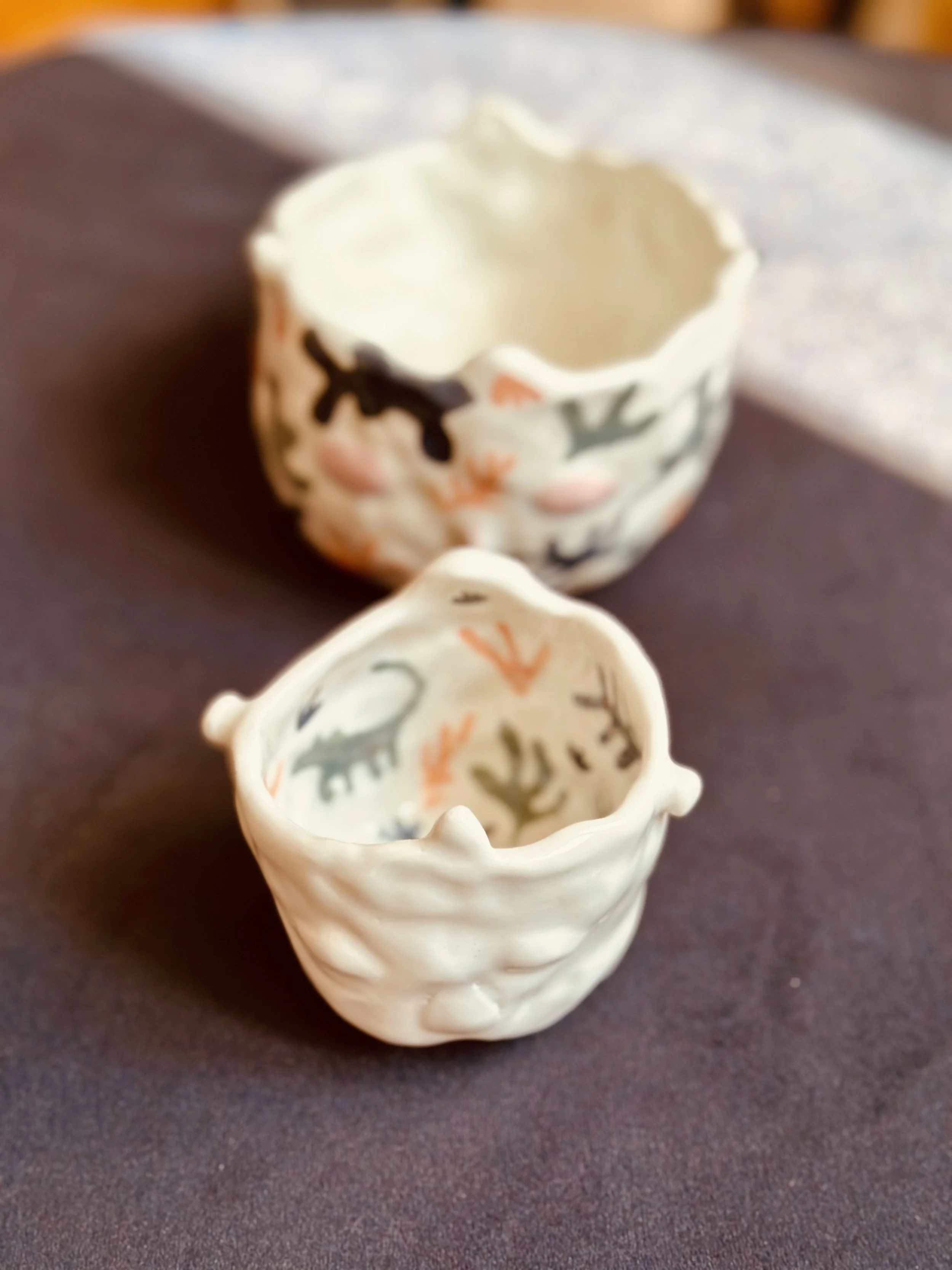 Working with ceramic and porcelain has allowed me to take my creativity to another level. Being able to imagine a tridimensional object that before I could only illustrate, seems to me like magic. Now, not only can I plunge into a universe of fantasy but I can bring it to my life through the creation of utilitarian objects. The following are examples of my work with porcelain, stoneware, oxides, engobes and glazes.